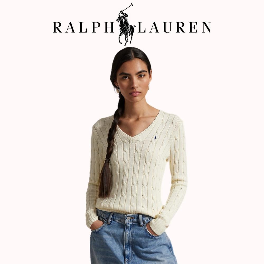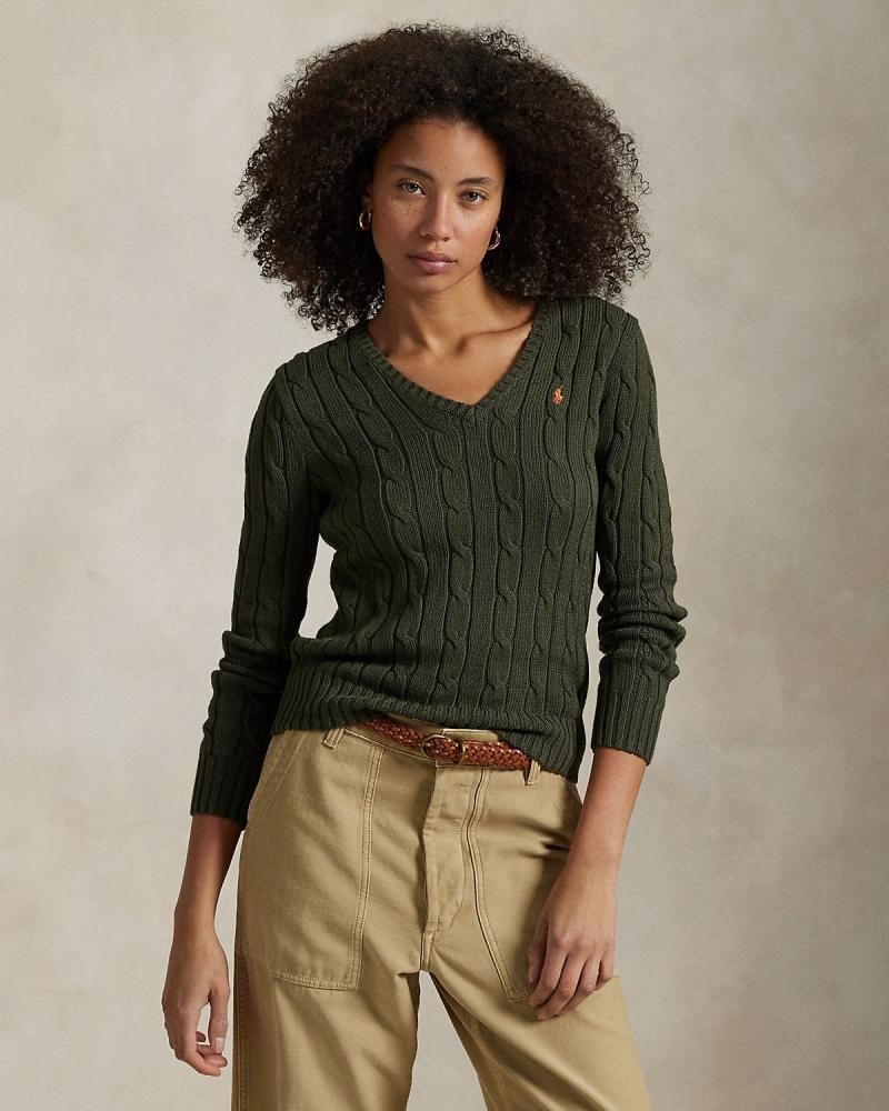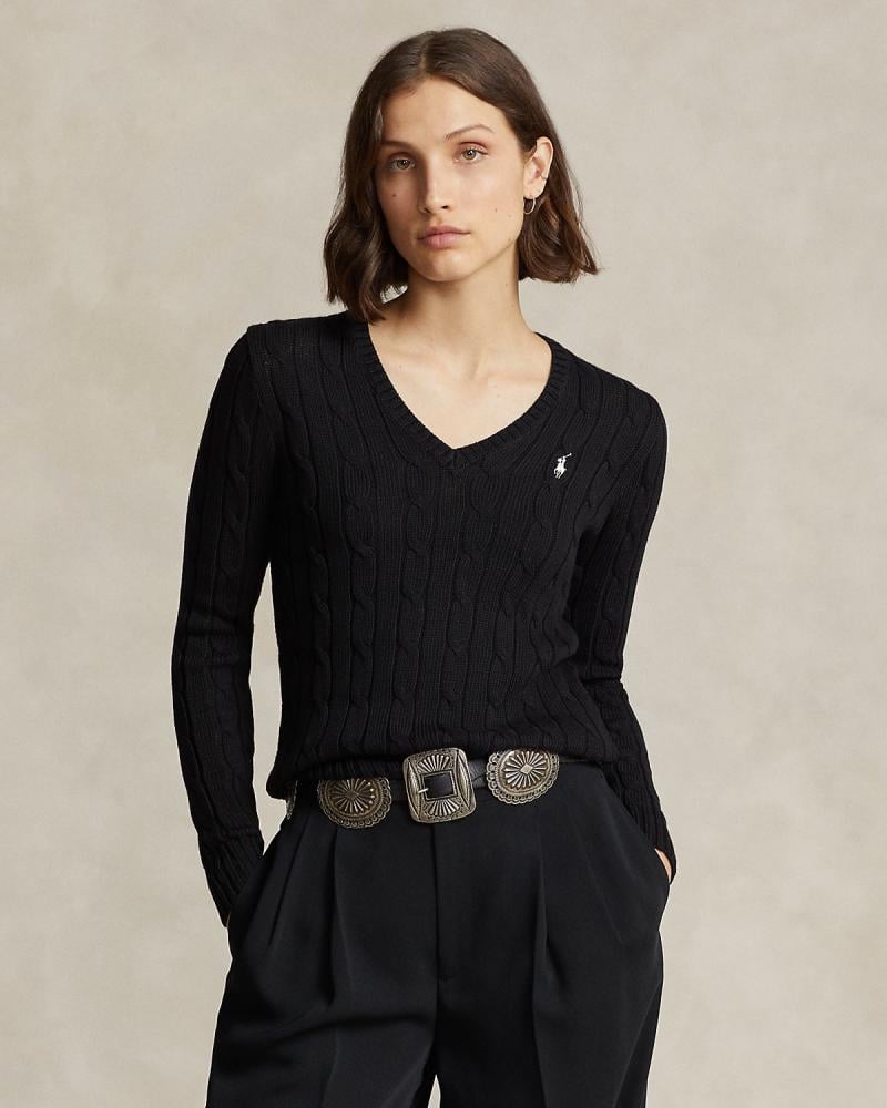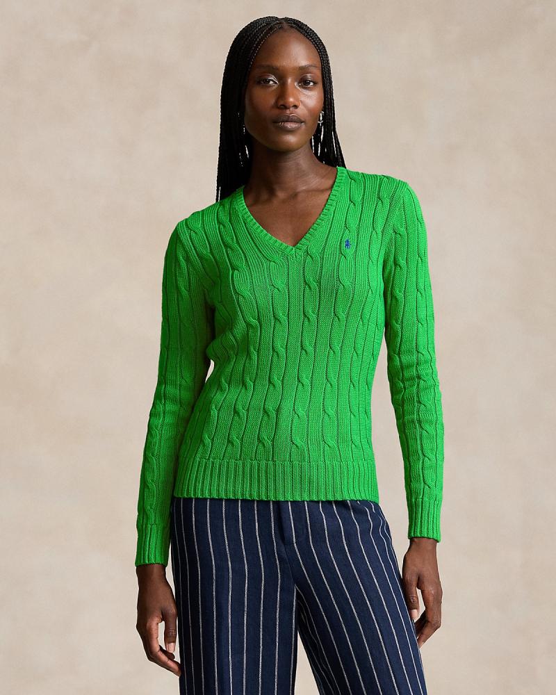 Cable-Knit Cotton V-Neck Sweater